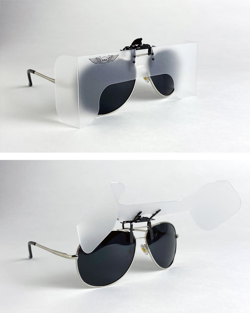 Overcasters™ are lightweight, clip-on visors that attach to any prescription eyeglass or sunglass frame in seconds. When flipped up they instantly provide for the perfect instrument-to-visual transition, and when flipped down create a near perfect "simulated instrument" condition.
